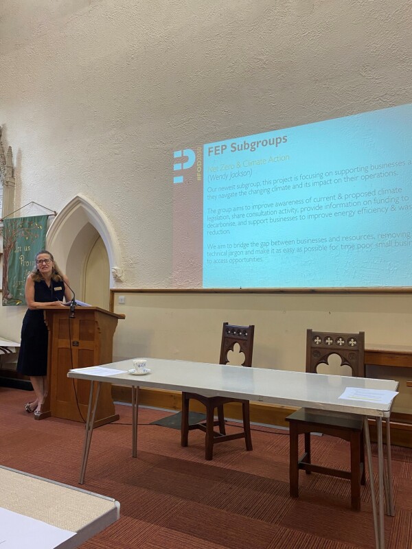 The stakeholder meeting opened with a welcome from FEP Director Wendy Jackson, in the absence of our Chair Neill Ricketts and vice-Chair Cllr Johnathan Lane. Among the latest announcements was the news that long time FEP Director Ian Price has decided to step down from his role in the FEP. Ian had been a Director for 4 years acting as the finance guide and has been a vital support during the end of the financial year accounts season. We are incredibly grateful to Ian for his many years of support and will miss him. Wendy also welcomed Kathy Probert, the Forest of Dean District Councils new bid writer, and Sally Adcock, the new Low Carbon Business Advisor, jointly funded by FEP and FoDDC. The Low Carbon Business Advisor is specifically funded to support with the Net Zero & Climate Action subgroup, so we’re looking forward to working with Sally closely in the future.